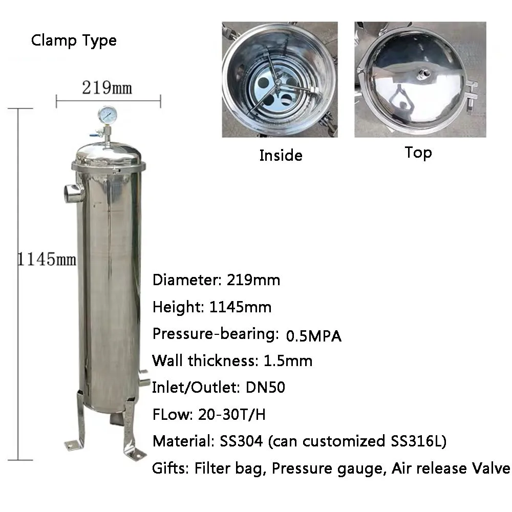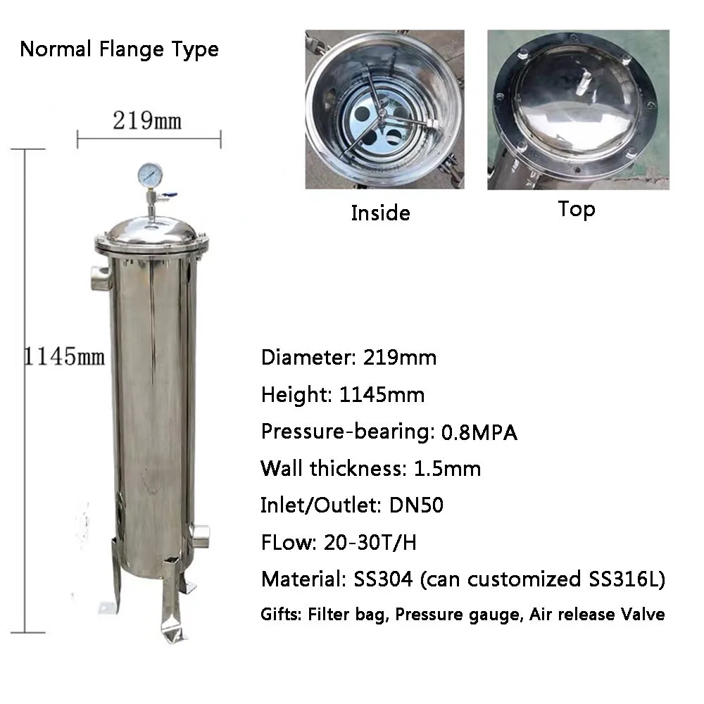 Bag Filter Stainless Steel SS304 High Precion Big Flow Industrial Pipe Water Oil Diesel Lacquer Sed