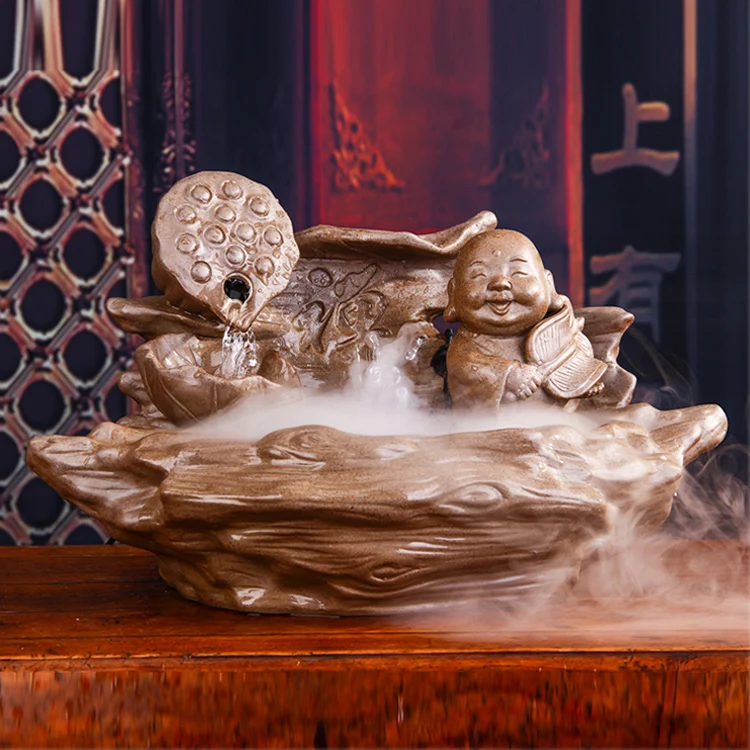 Handmade ceramic water ornaments Chinese retro desk ceramic water atomization humidifier Feng Shui