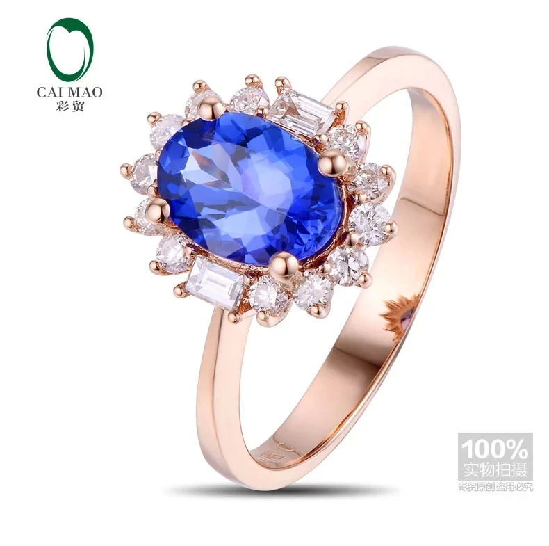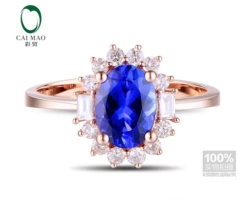 Hot Sale CaiMao 18KT/750 Rose Gold 1.38 ct Natural IF Blue Tanzanite AAA 0.38 ct Full Cut Diamond Engagement