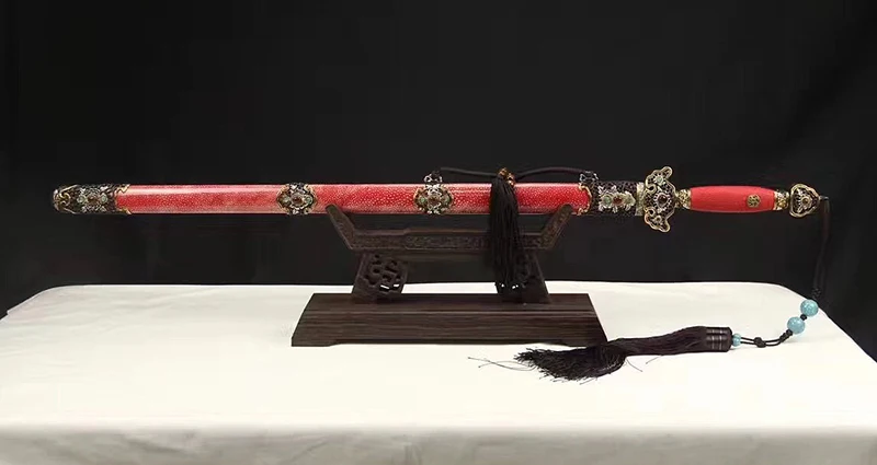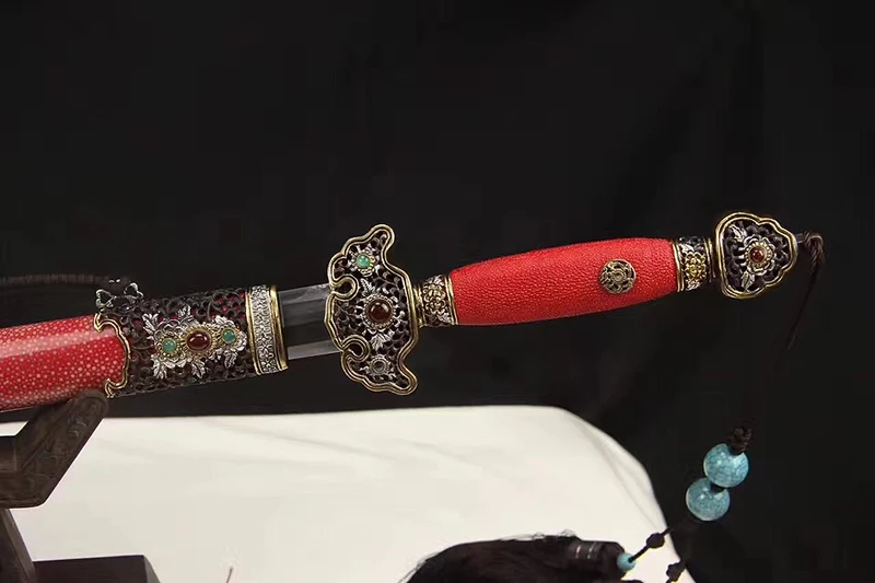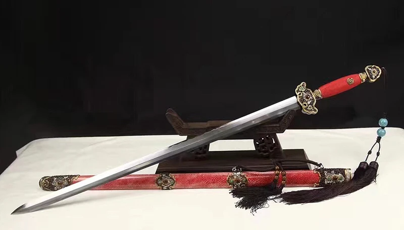 Chinese Tang Dynasty Sword Fully Hand-made Damascus folded steel Full tang Red blade Sword Water Qu
