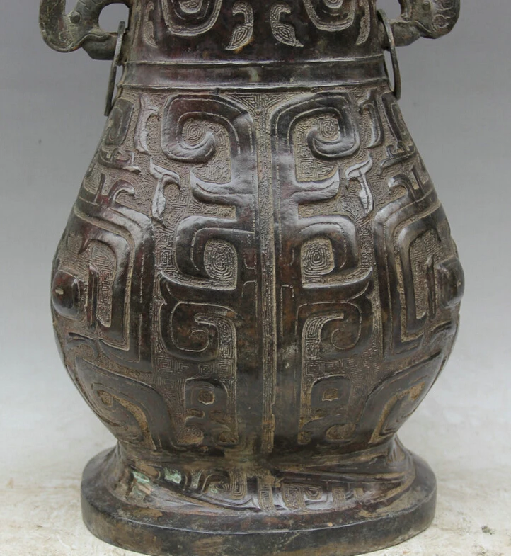 song voge gem S2175 18" Old Chinese Dynasty Bronze Handle Wine Water Vessel Ware Pot Jar Kettle