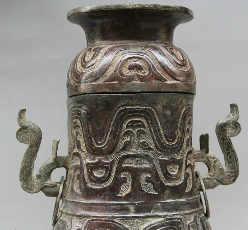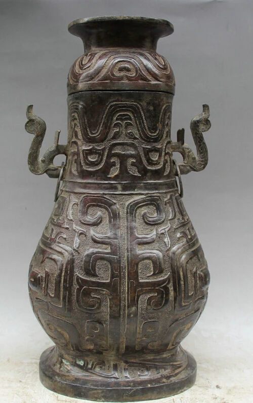 BEST SELLER song voge gem S2175 18" Old Chinese Dynasty Bronze Handle Wine Water Vessel Ware Pot Jar Kettle