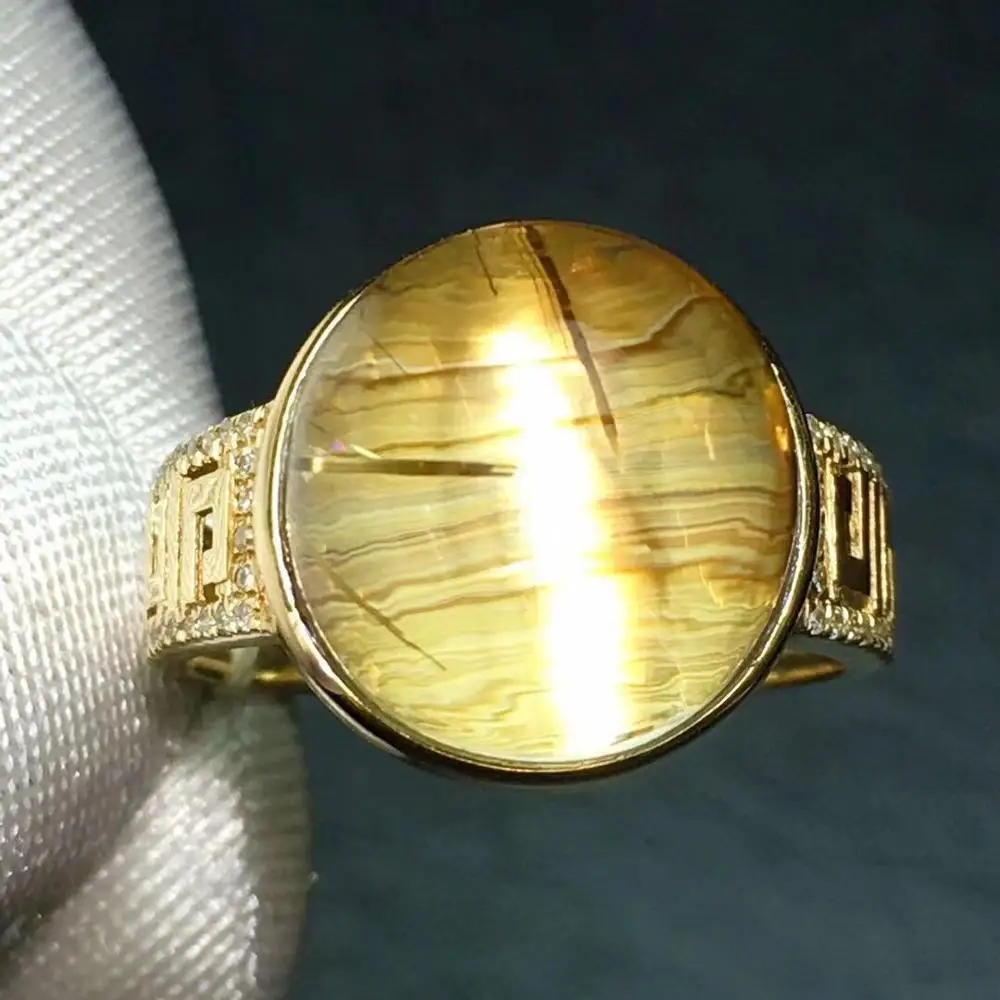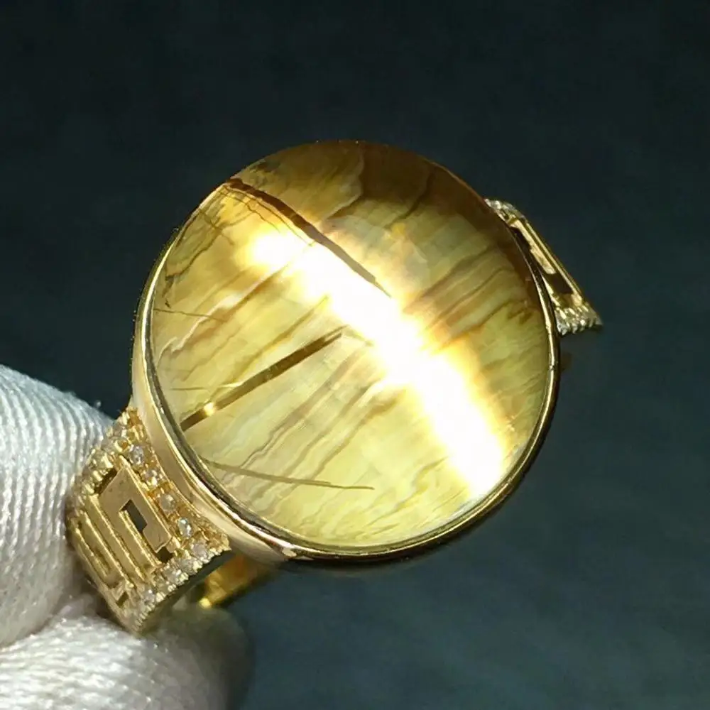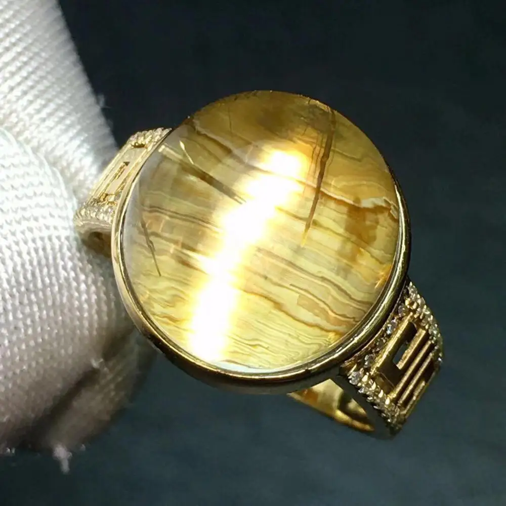 TOP Fine Jewelry Real 18K Gold Natural Rutilated Quartz 11.5ct Gemstone Diamonds Female Anniversary Gif