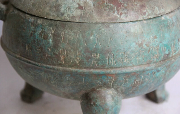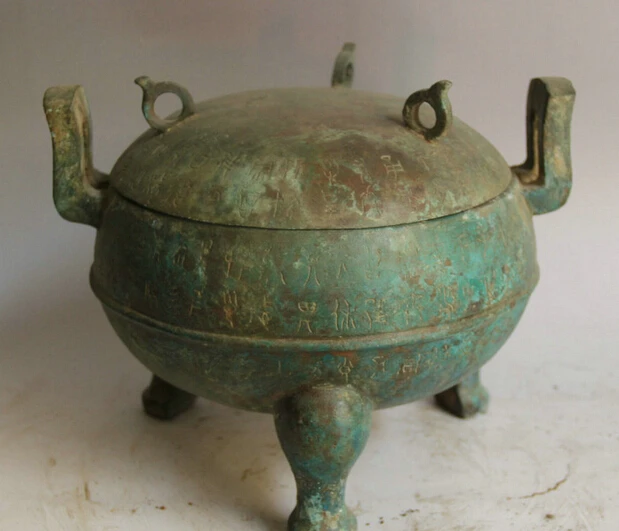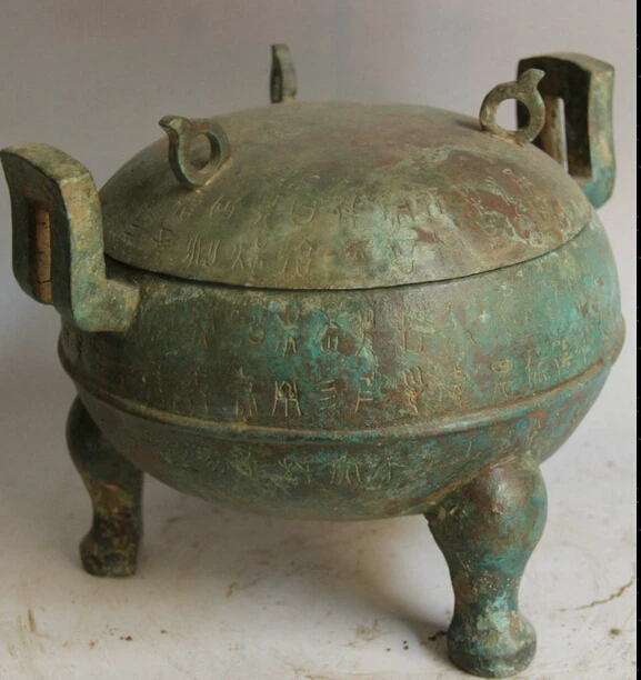 JP S0524 10" Old Chinese Bronze Folk circular handle food word water vessel Pot Jar Crock