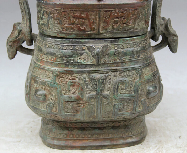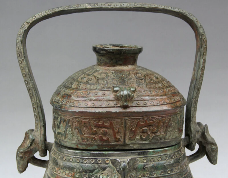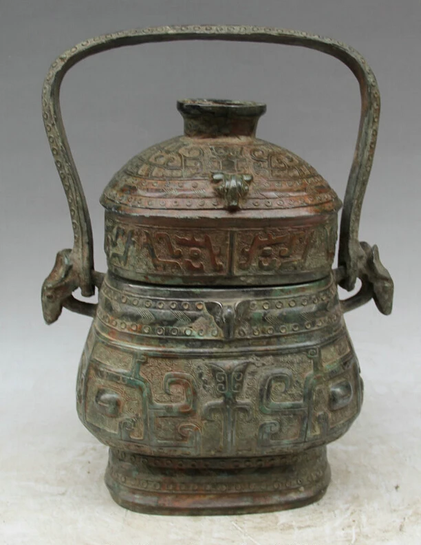 Elegant old S2293 18" Old China Bronze Beast Head food water vessel portable Pot Jar Crock kettle s