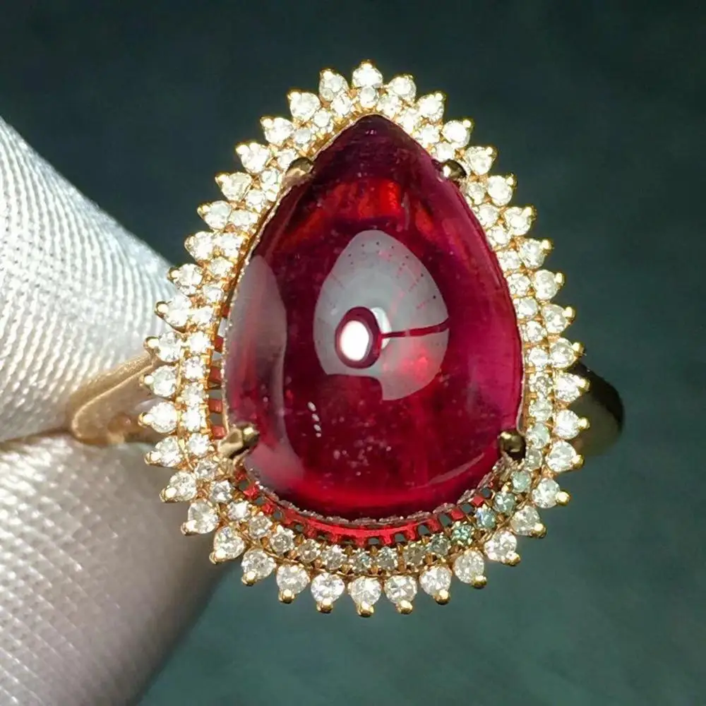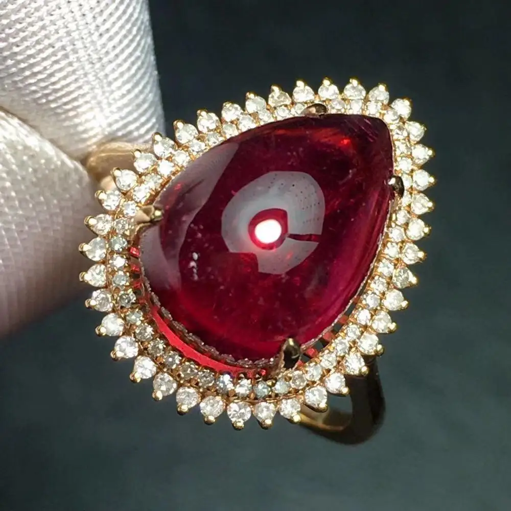 HOT SALE Rubillite Ring Fine Jewelry Pure 18 K Gold Natural Rubi Tourmaline 9.3ct Gemstone Diamond Gift Fema