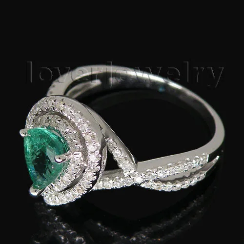 Elegant Jewelry Solid 18Kt White Gold Emerald RingReal Diamond Emerald Ring Pear 5x7mm SR0007