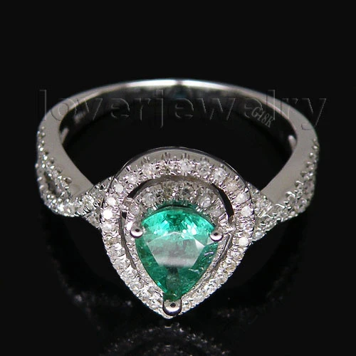 BEST SELLER Elegant Jewelry Solid 18Kt White Gold Emerald RingReal Diamond Emerald Ring Pear 5x7mm SR0007